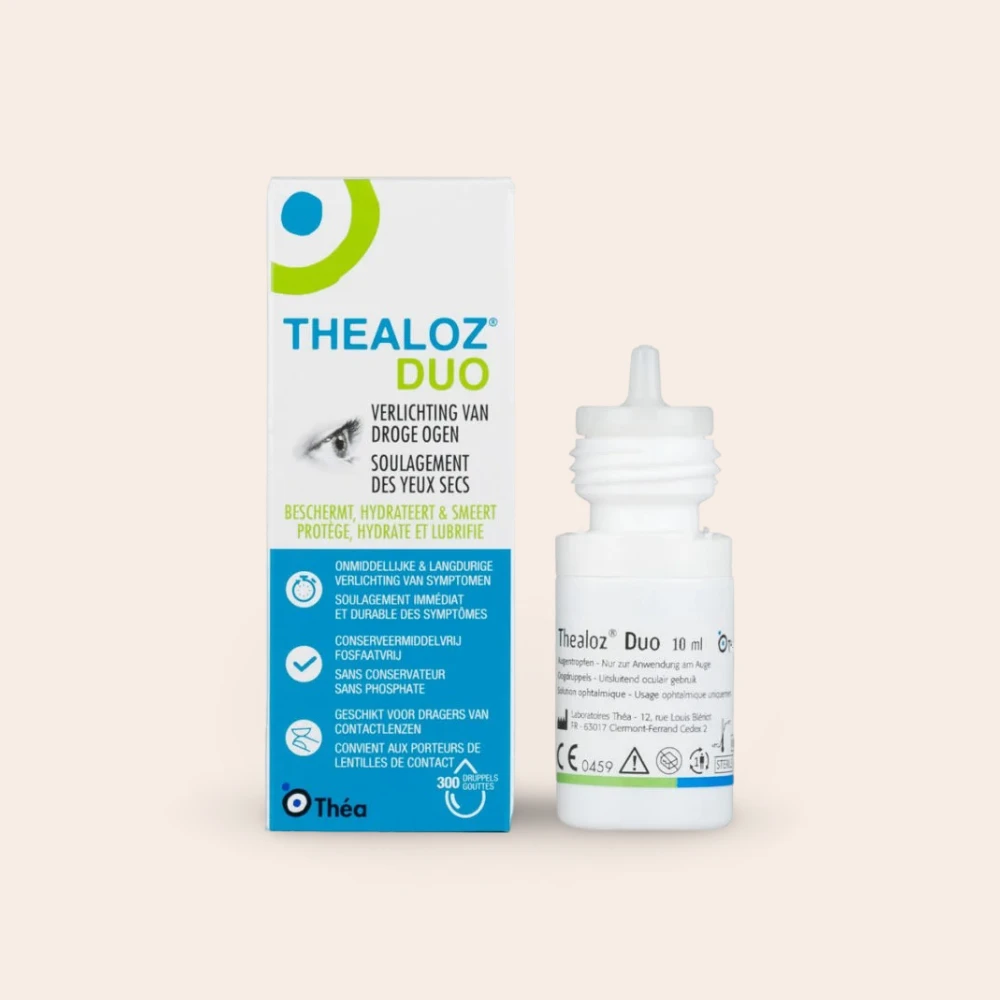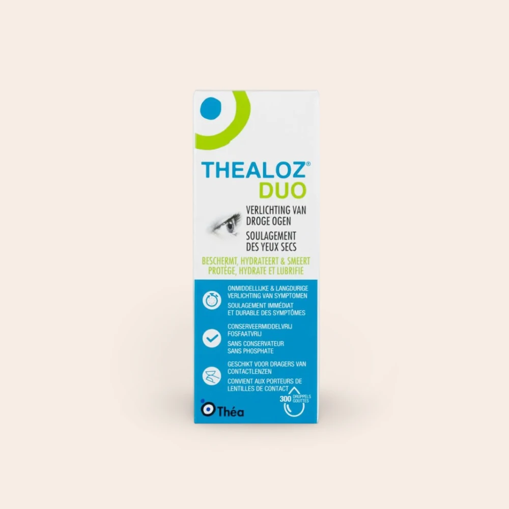 Thealoz Duo is een oogdruppeloplossing zonder conserveermiddelen, speciaal ontwikkeld voor de behandeling van matige tot ernstige droge ogen. De combinatie van trehalose en natriumhyaluronaat hydrateert, beschermt en verzacht geïrriteerde ogen, veroorzaakt door omgevingsfactoren of oogchirurgie.
